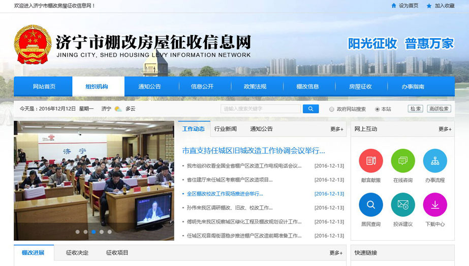 我们公司主要为其承建了济宁市棚改房屋征收信息系统,以及配套的济宁市棚改房屋征收信息系统网站和济宁市棚改房屋征收信息系统公开系统。